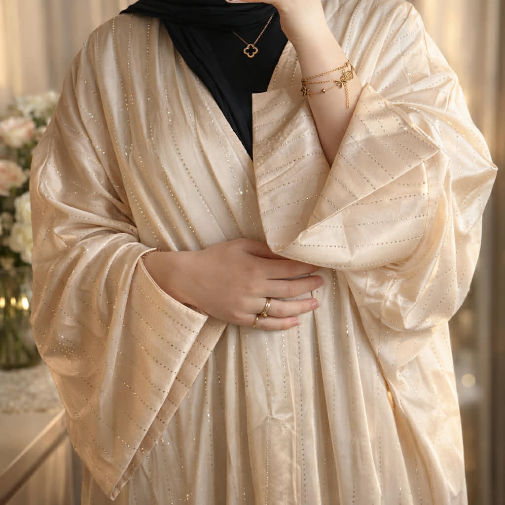 Facile à associer avec une abaya foncée ou claire, Hayat ajoute ce petit glow subtil qui fait toute la différence ✨
